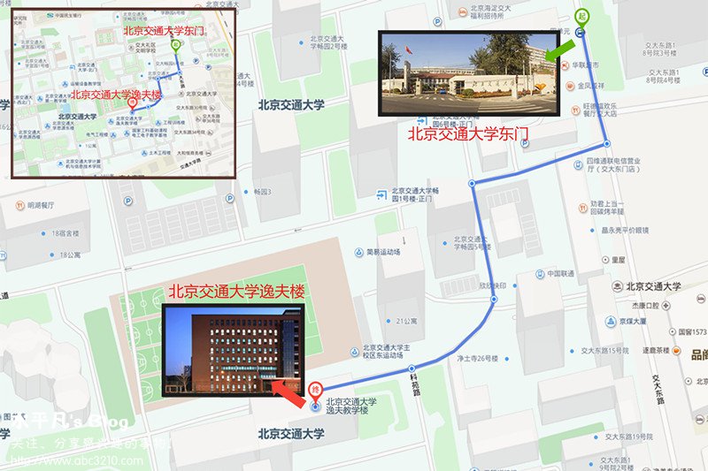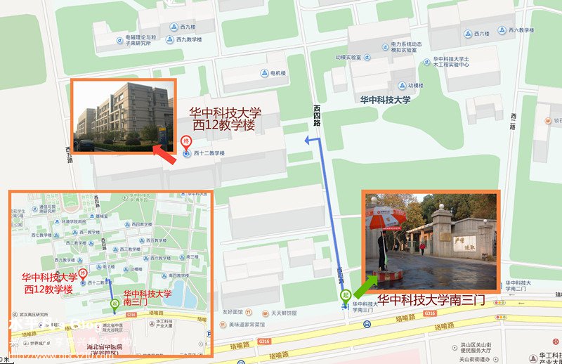 乘车路线建议: 可乘坐北京公交87、438、651、快速直达专线35、特15、运通103路等到“北京交通大学东门”站下。  (2)武汉:武汉市洪山区珞喻路145号华中科技大学主校区西十二楼,请考生从“南三门”进。